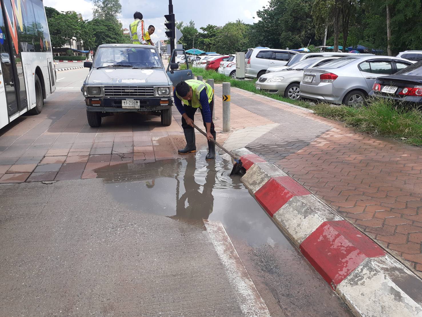 กวาดทำความสะอาดถนนทางระบายน้ำถนน โรงพยาบาลทันตกรรม