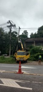 หลังภัยสงบเจ้าหน้าที่ทางหน่วยซ่อมบำรุงกองอาคารและสถานที่ ได้ทำการสนับสนุนงานสวน เพื่อเข้าดำเนินการตัดและเคลื่อนย้ายต้นไม้ พร้อมทั้งประสานงาน ตัดกระแสไฟฟ้า และเก็บสายไฟ–สายสัญญาณ รวมถึงประมาณการวัสดุที่ต้องใช้ในการซ่อมแซม และดำเนินการเข้าแก้ไขไฟบริเวณแยกนนทรี เนื่องจากต้นไม้ล้มทับเสาไฟฟ้าหักให้สามารถกลับเข้ามาใช้งานได้ตามปกติ