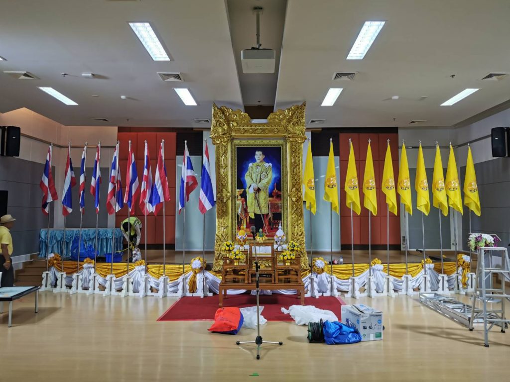 เมื่อวันที่ 21 กรกฎาคม 2563 เจ้าหน้าที่งานซ่อมบำรุงอาคารและถนน ดำเนินการจัดสถานที่งานกิจกรรมเฉลิมพระเกียรติพระบาทสมเด็จพระเจ้าอยู่หัวเนื่องในโอกาสวันเฉลิมพระชนม์พรรษา 28 กรกฎาคม 2563 ที่จะจัดขึ้นในวันที่ 22 กรกฎาคม 2563 ณ ห้องประชุมสิริคุณากร 3 อาคารสิริคุรากร สำนักงานอธิการบดีมหาวิทยาลัยขอนแก่น